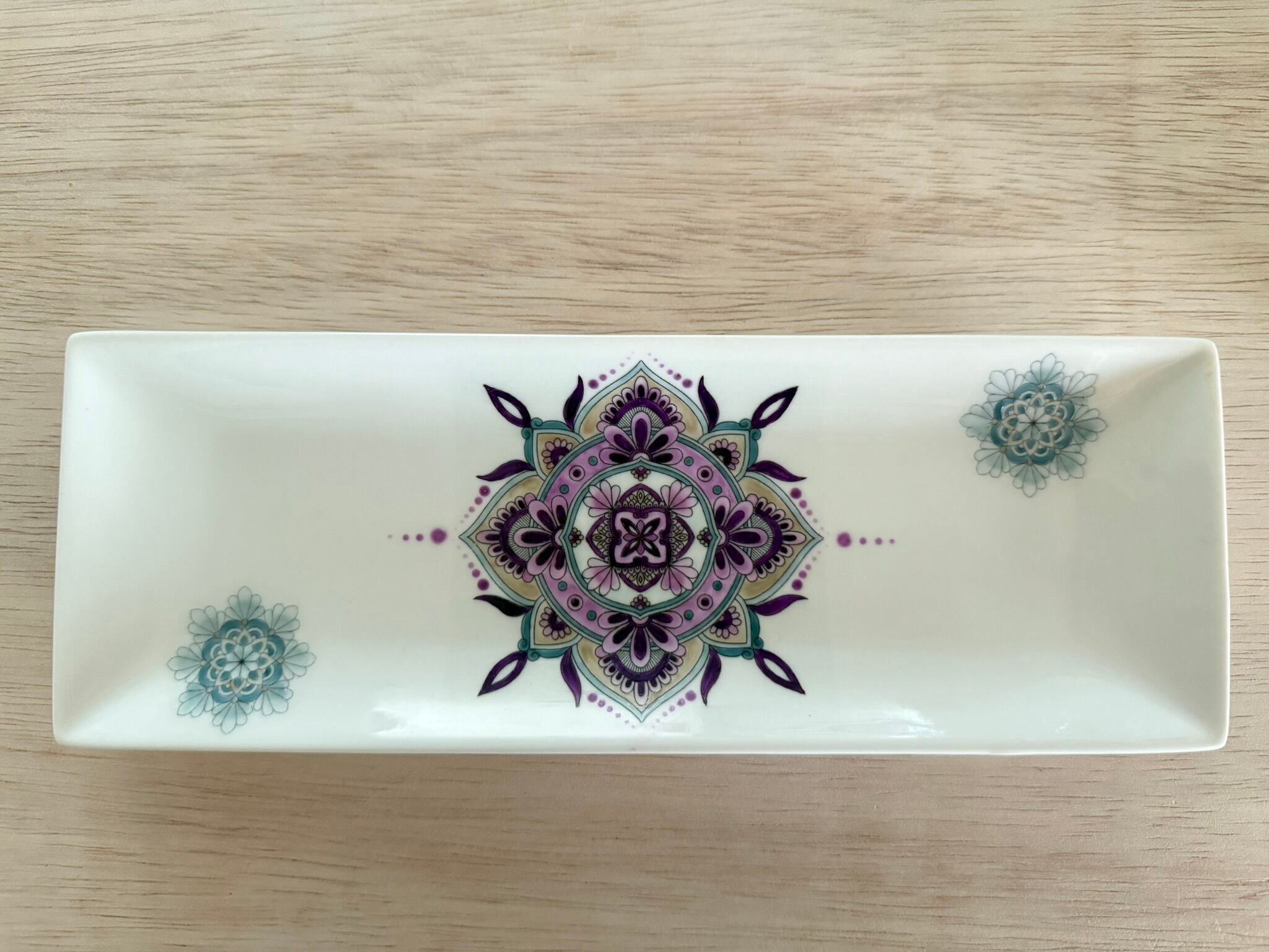 曼荼羅模様の絵付けは手作業で行っております。ハンドメイドの雰囲気をお楽しみください。