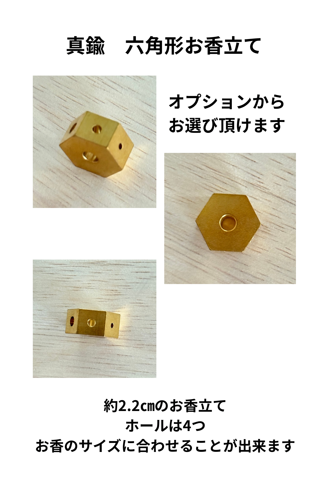 ※真鍮素材の六角形お香立てはオプションでご購入可能です。