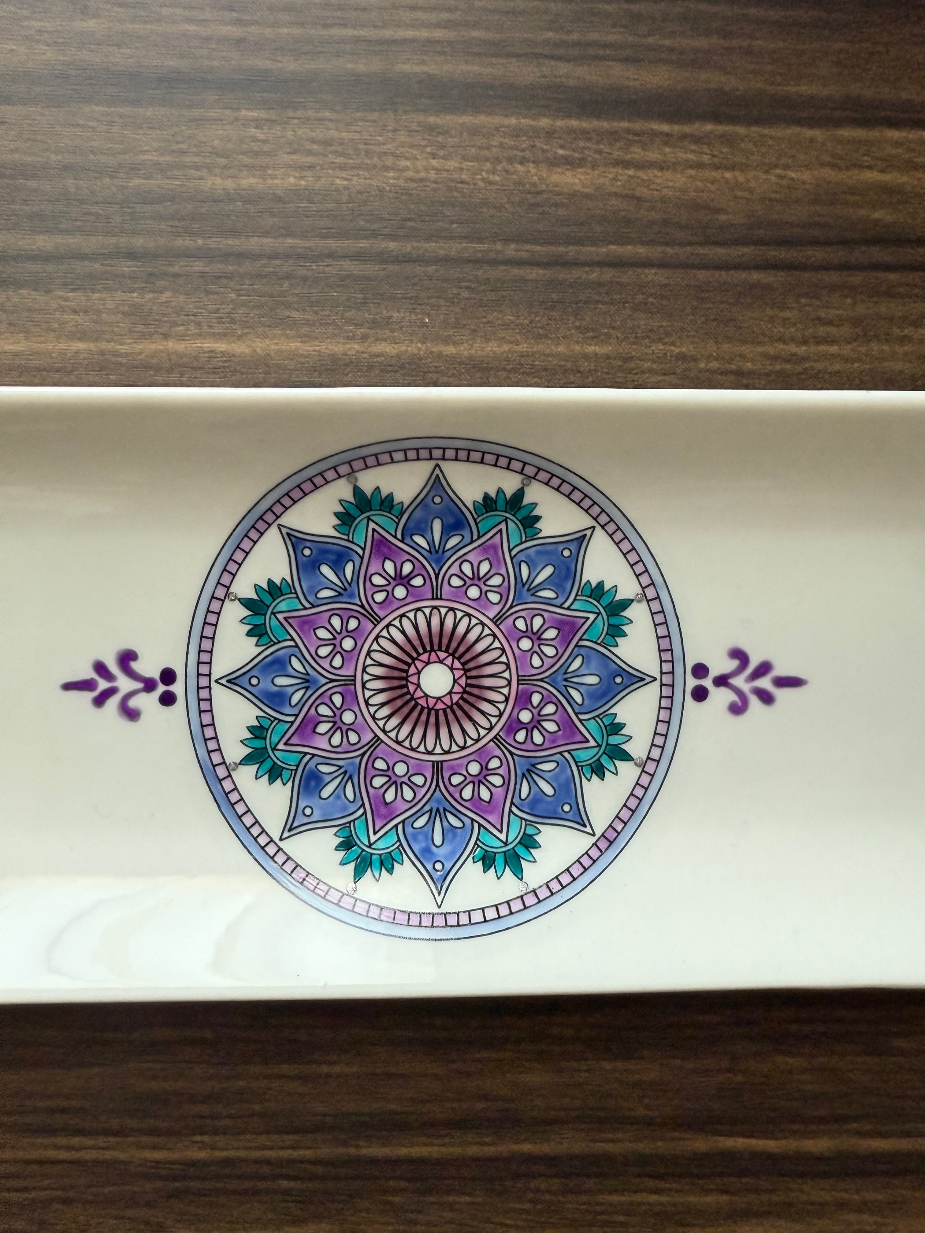 曼荼羅模様の絵付けは手作業で行っております。ハンドメイドの雰囲気をお楽しみください。