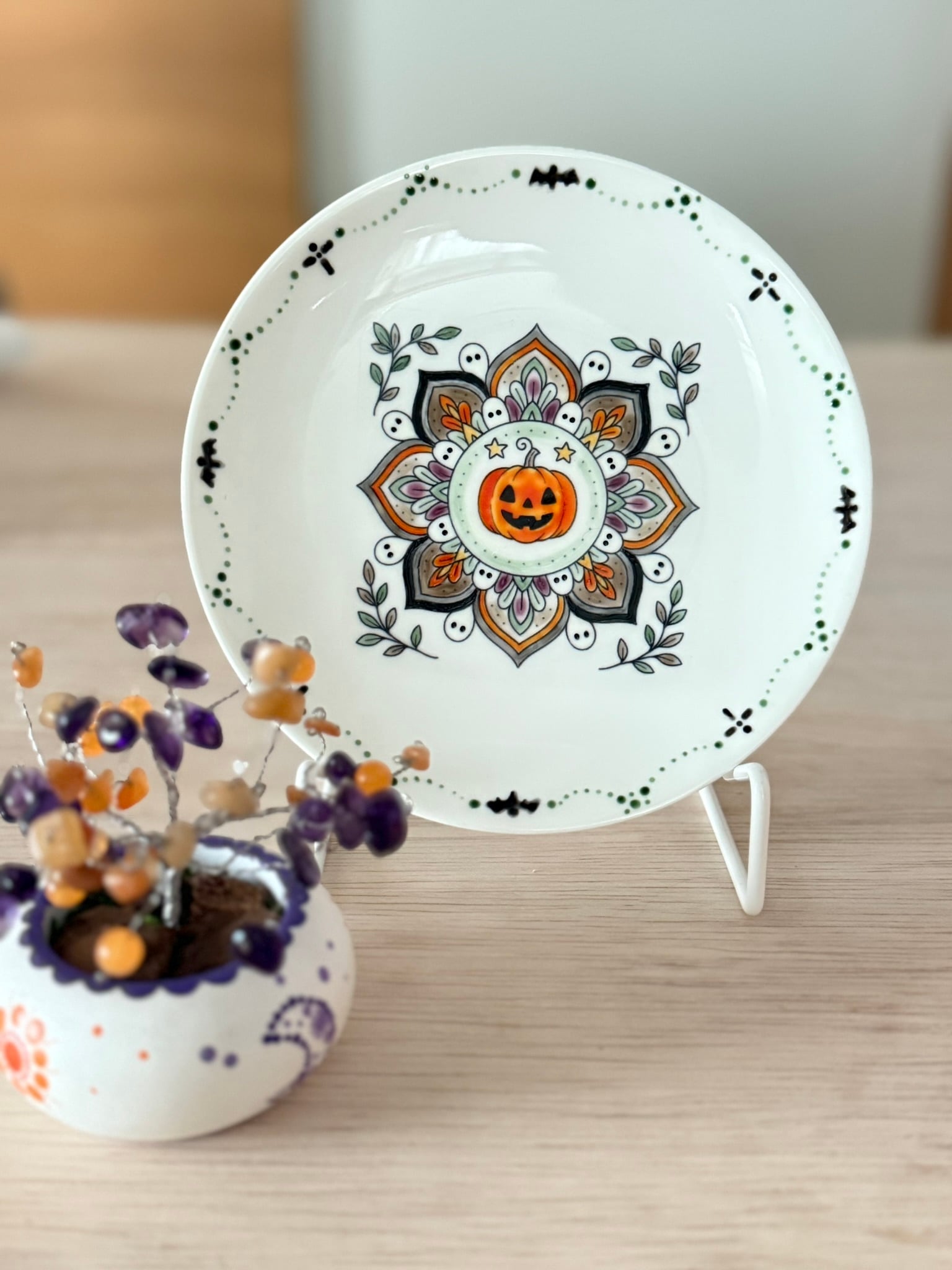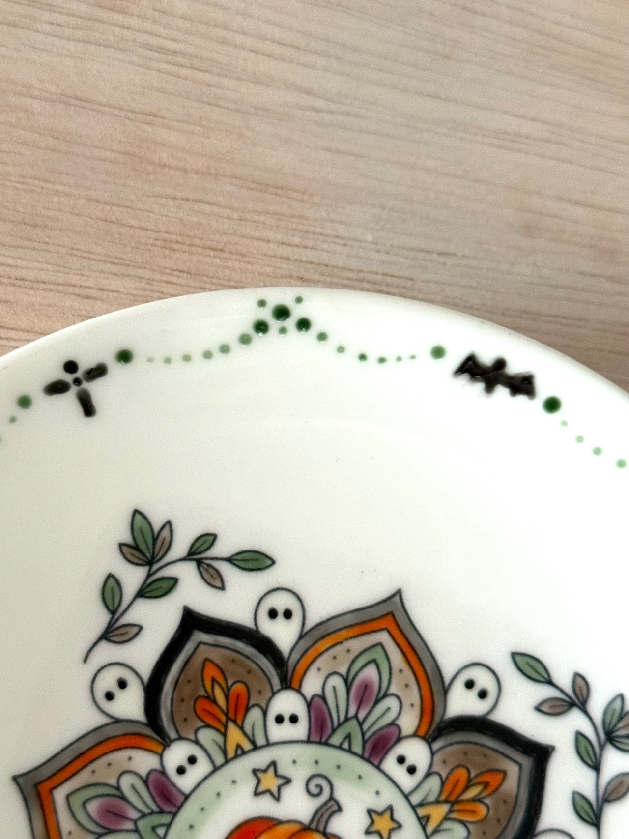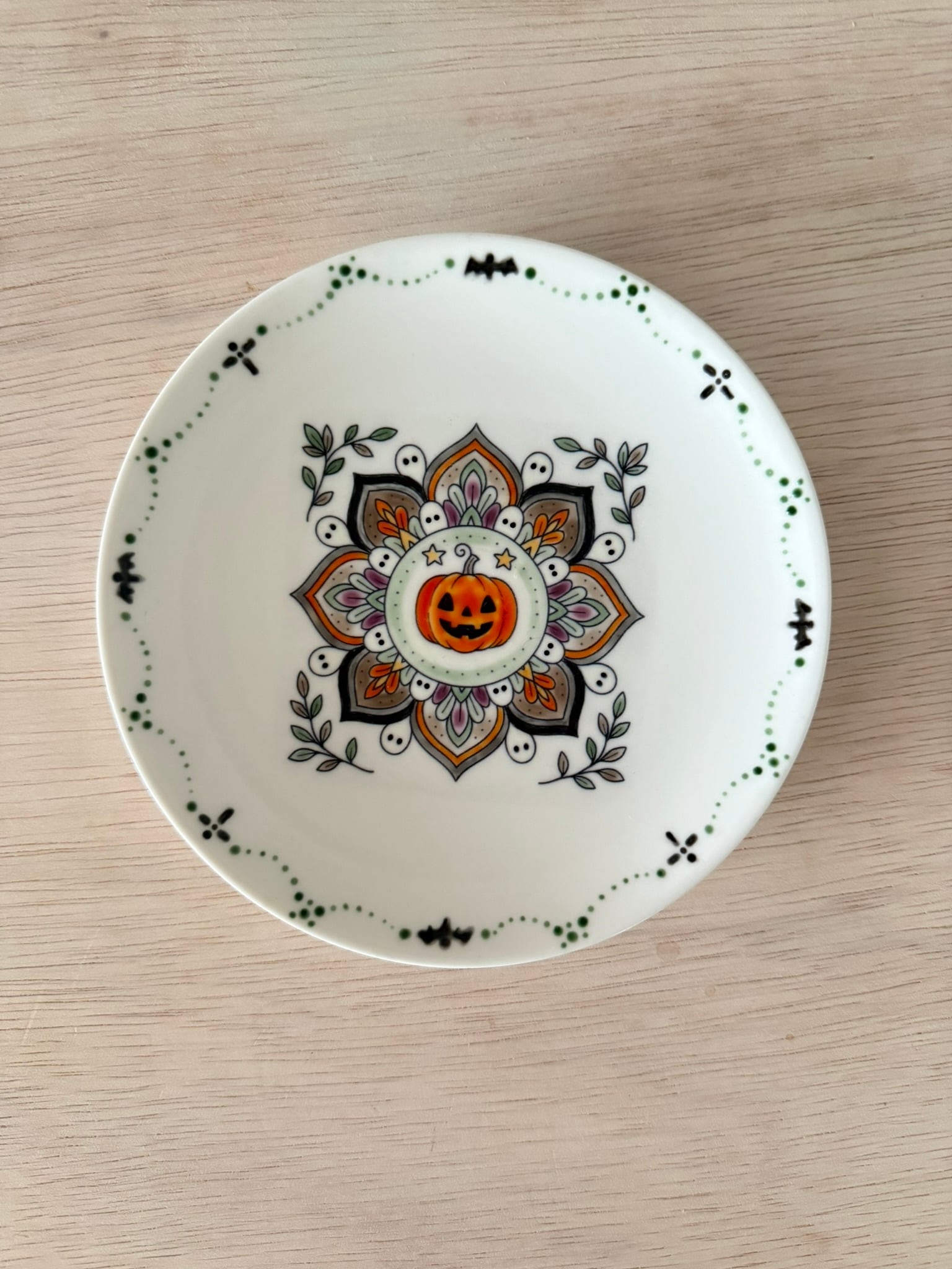 心を躍らせるハロウィンの季節にぴったりな、ちょっぴりビンテージ風な曼荼羅模様のハロウィンプレート。
