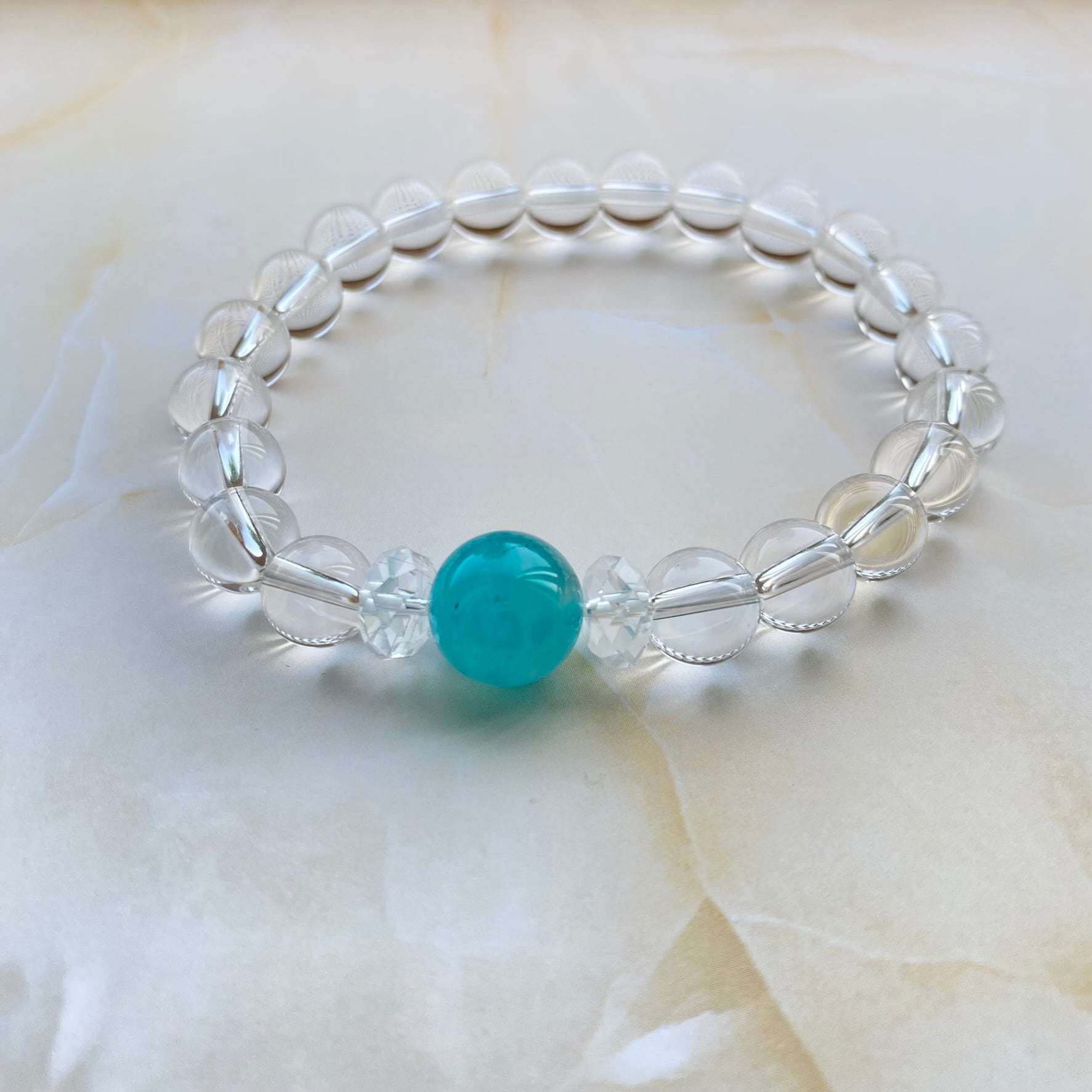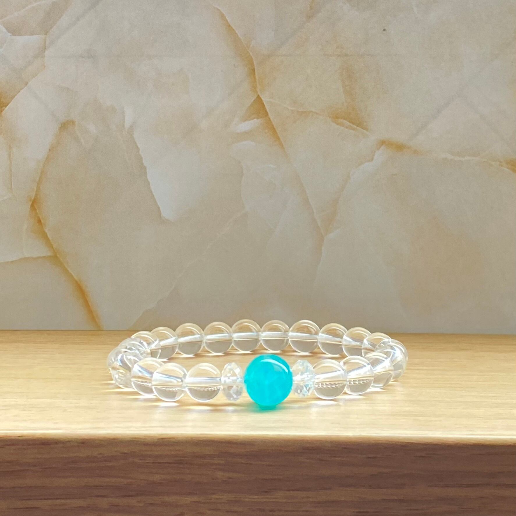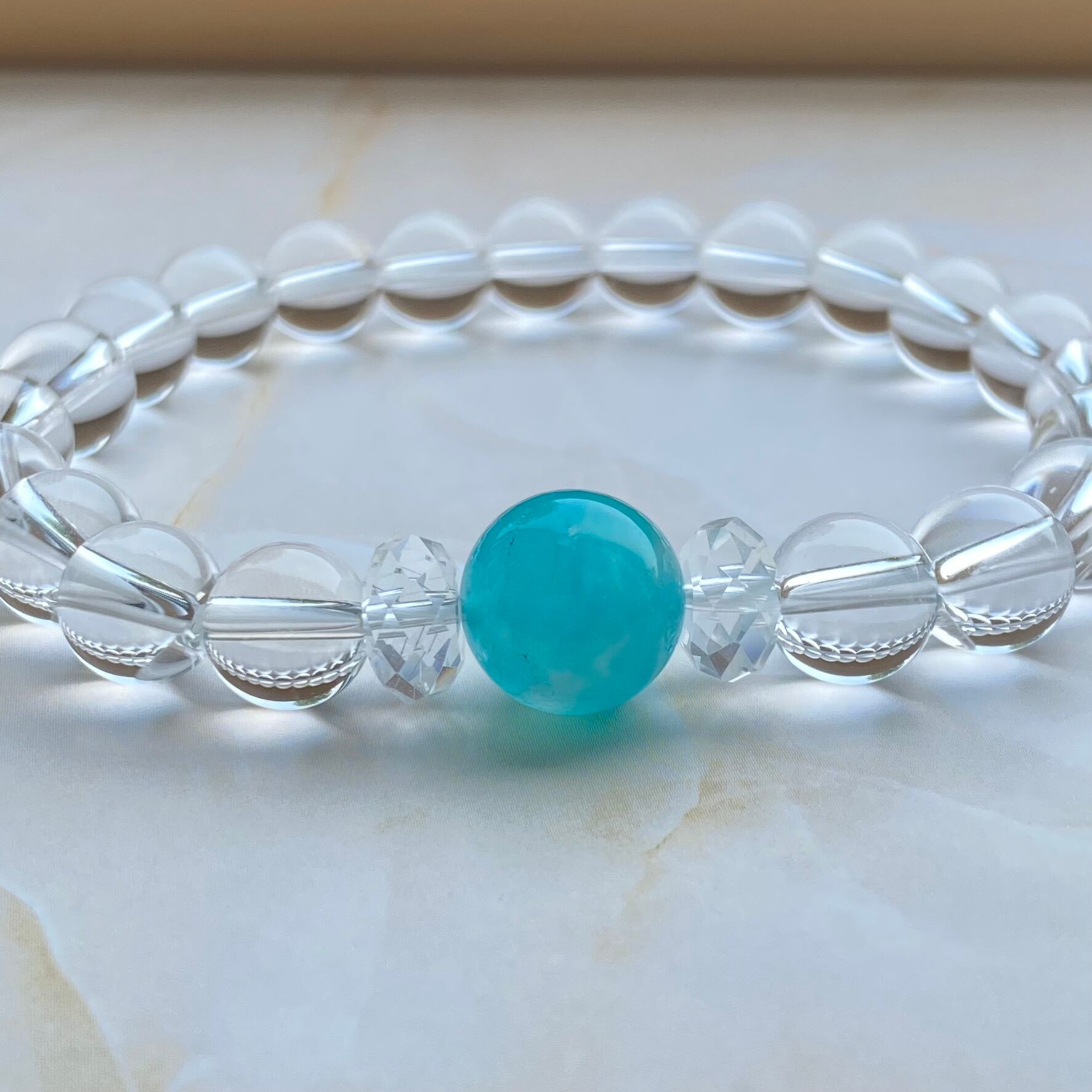 心を癒す、水晶・アマゾナイトシリカ ブレスレット。