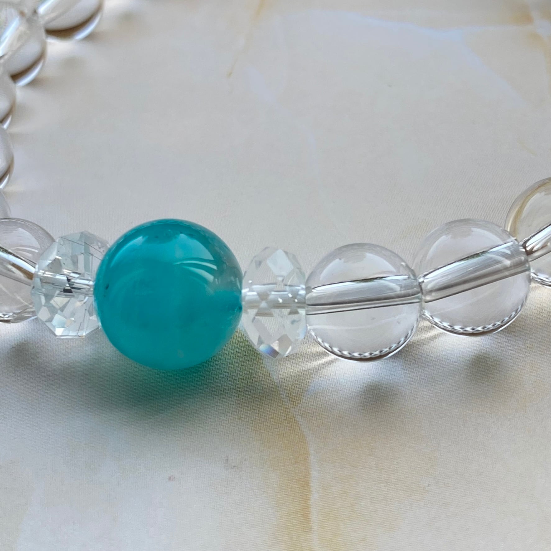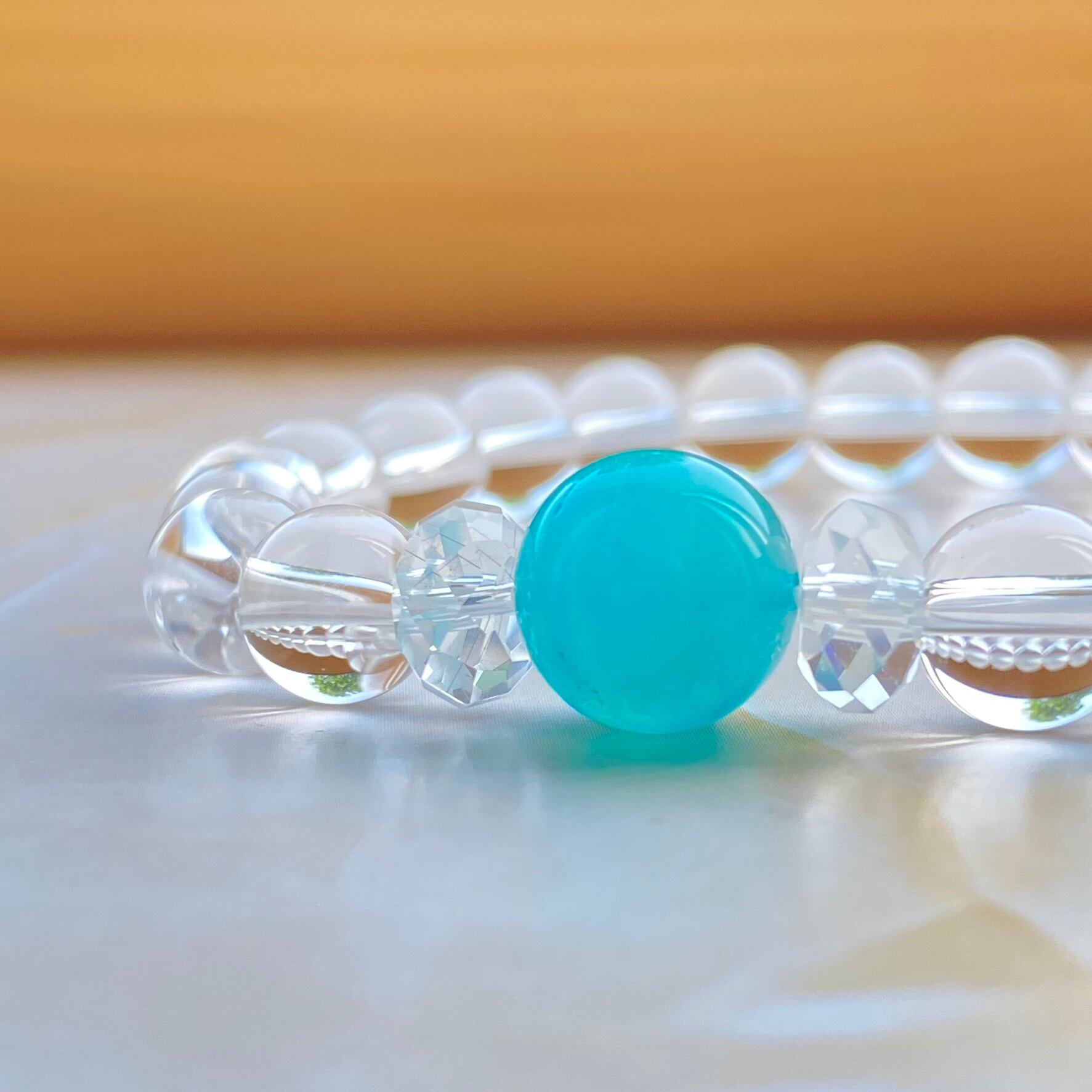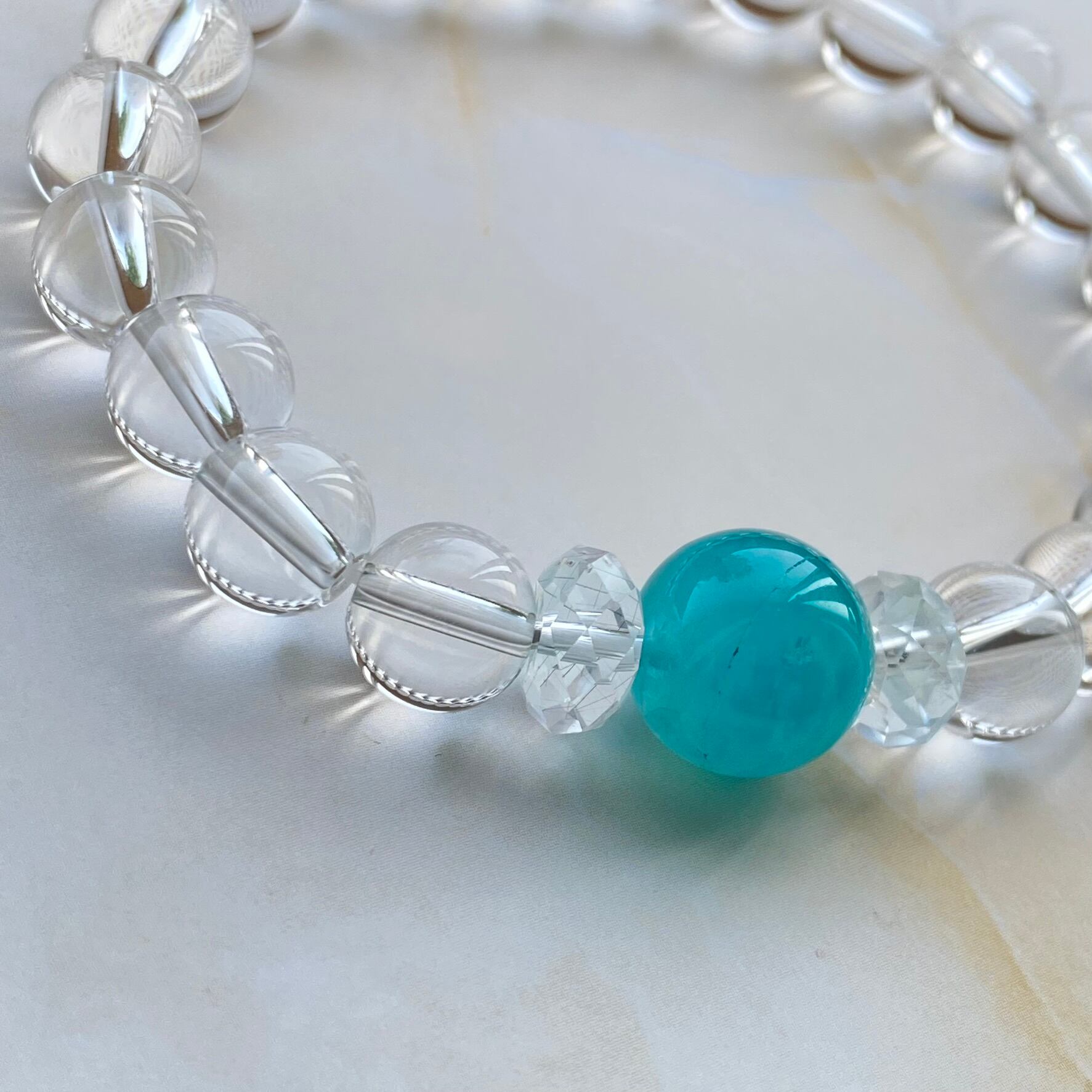 心を癒す、水晶・アマゾナイトシリカ ブレスレット。