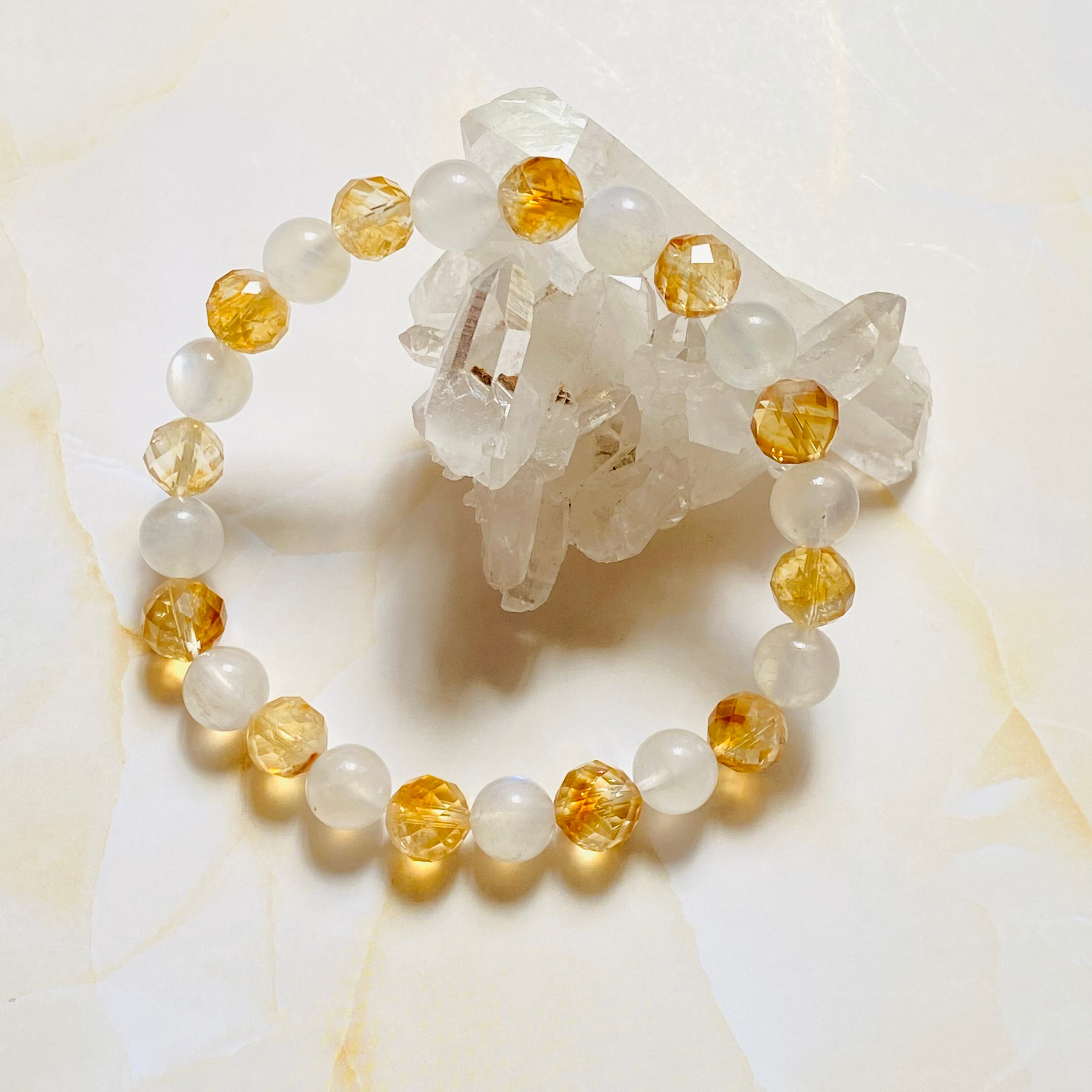 シトリンとロイヤルブルームーンストーンを使用した華やかなブレスレット。