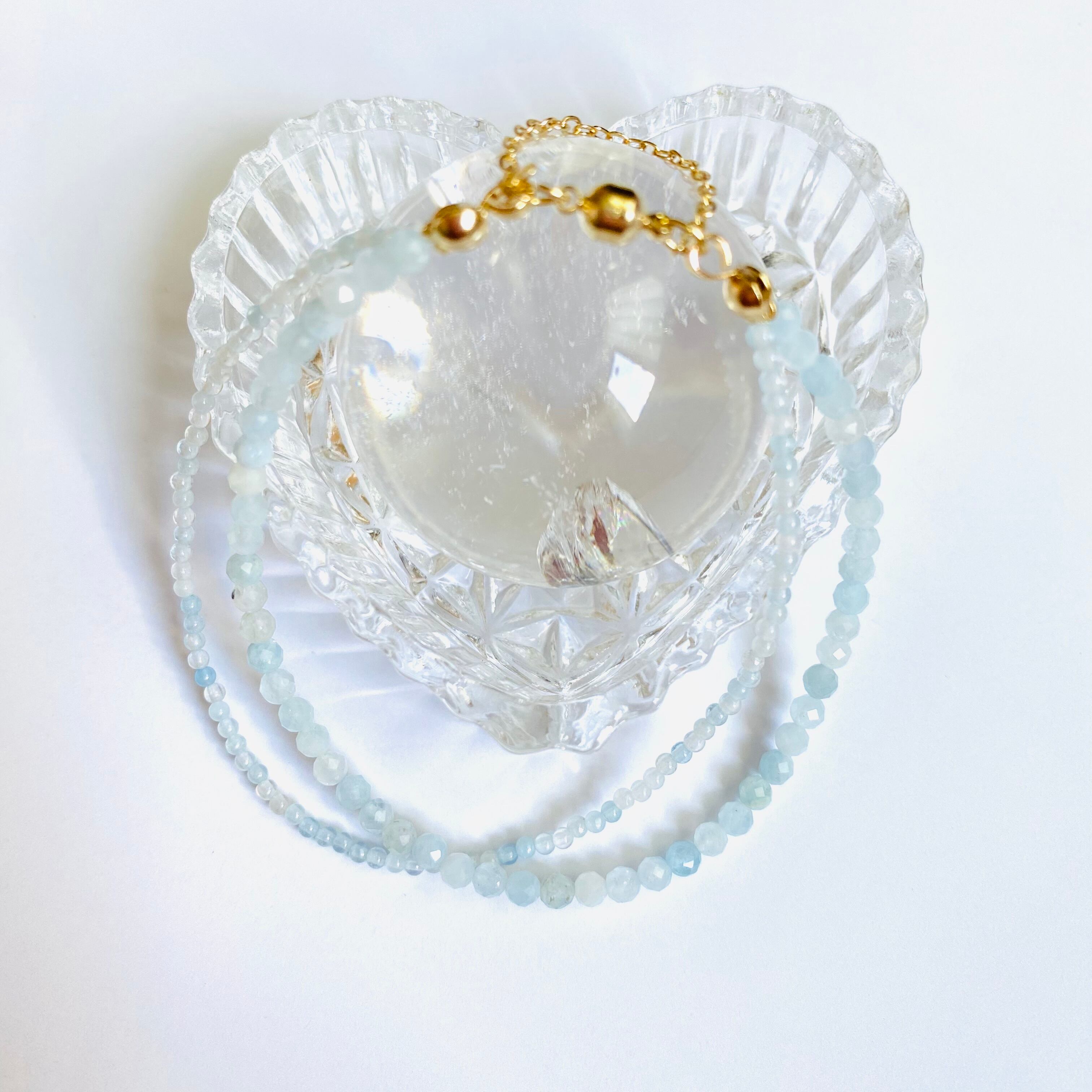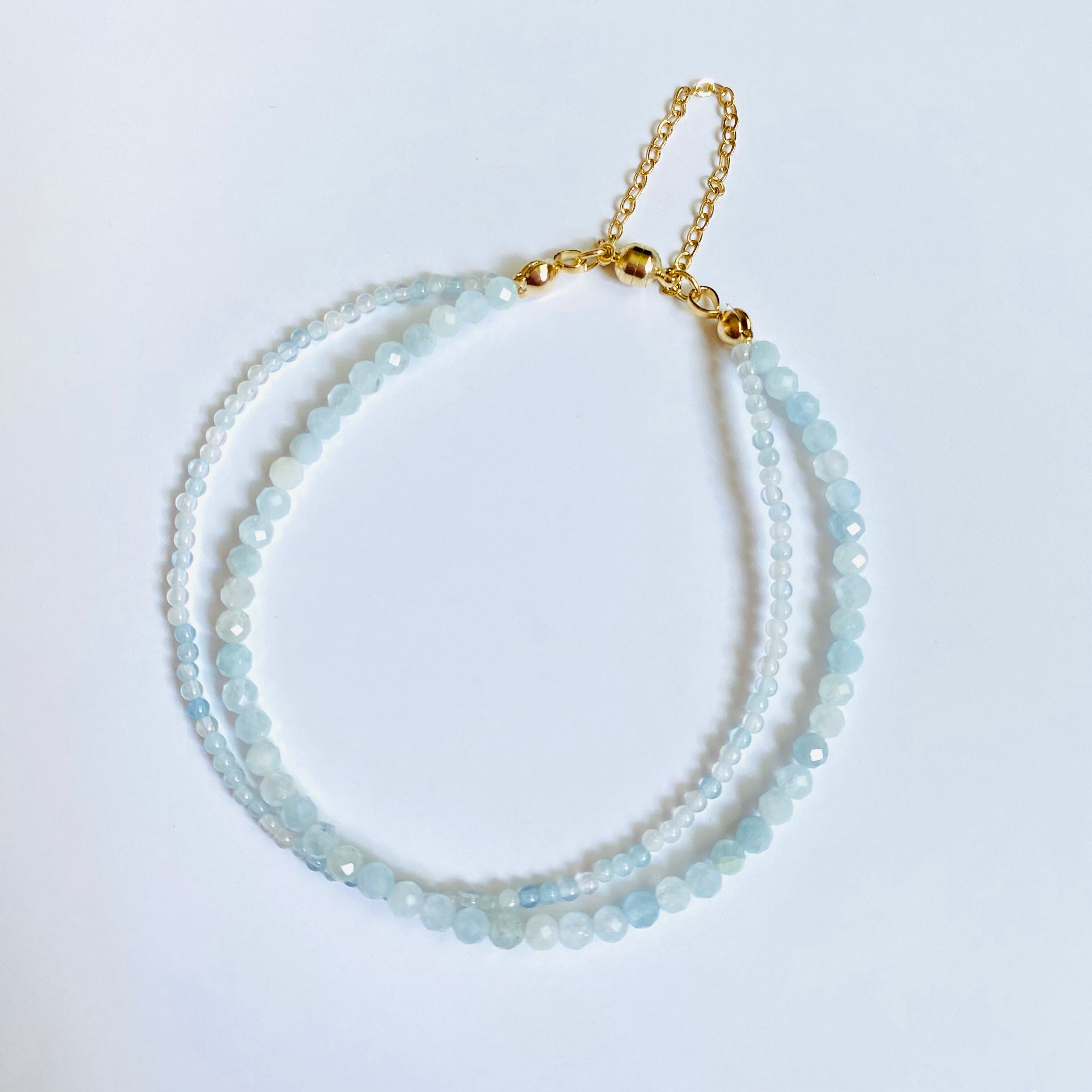 美しいアクアマリンの色合いが魅力の2連ブレスレットです。